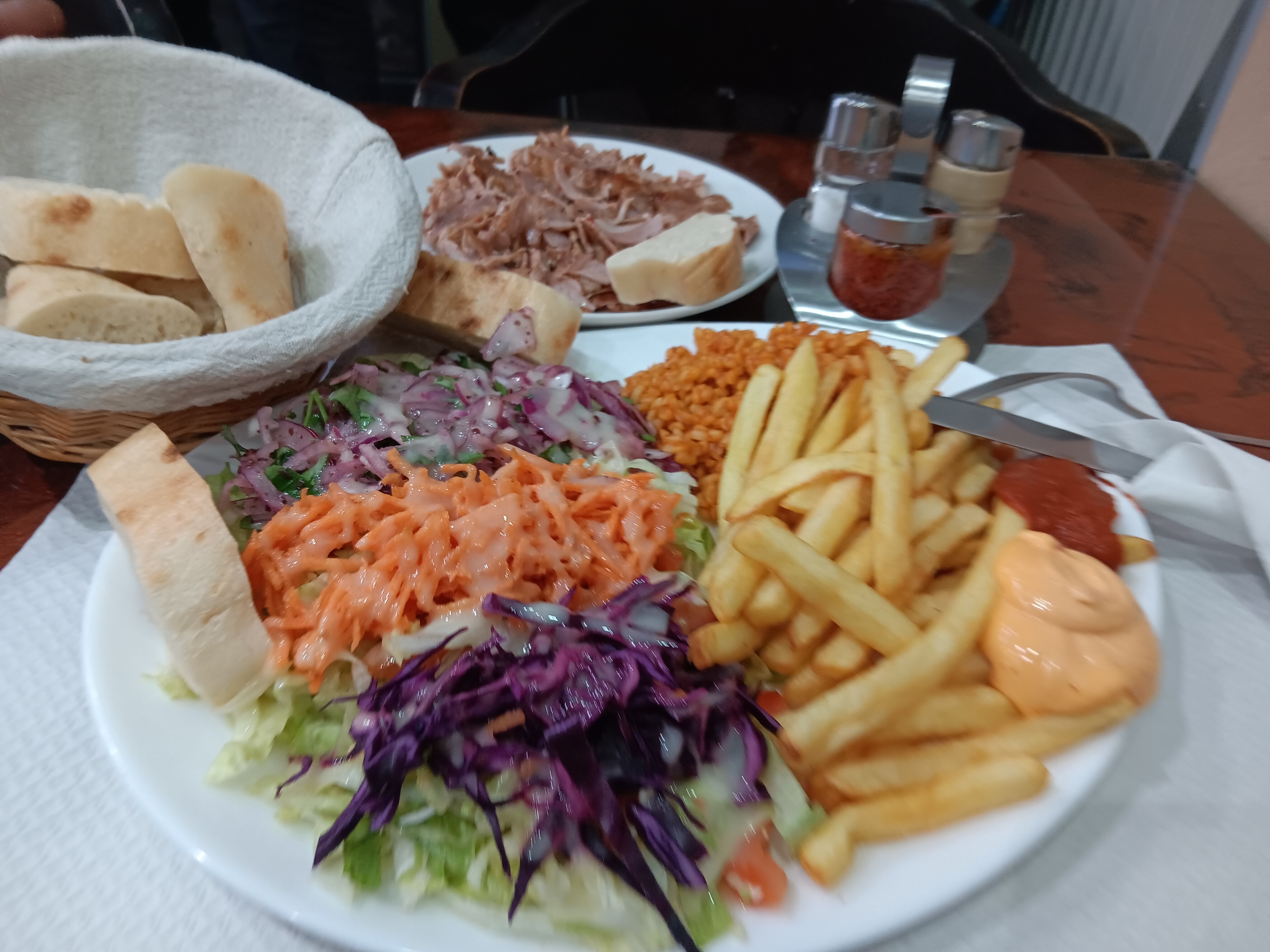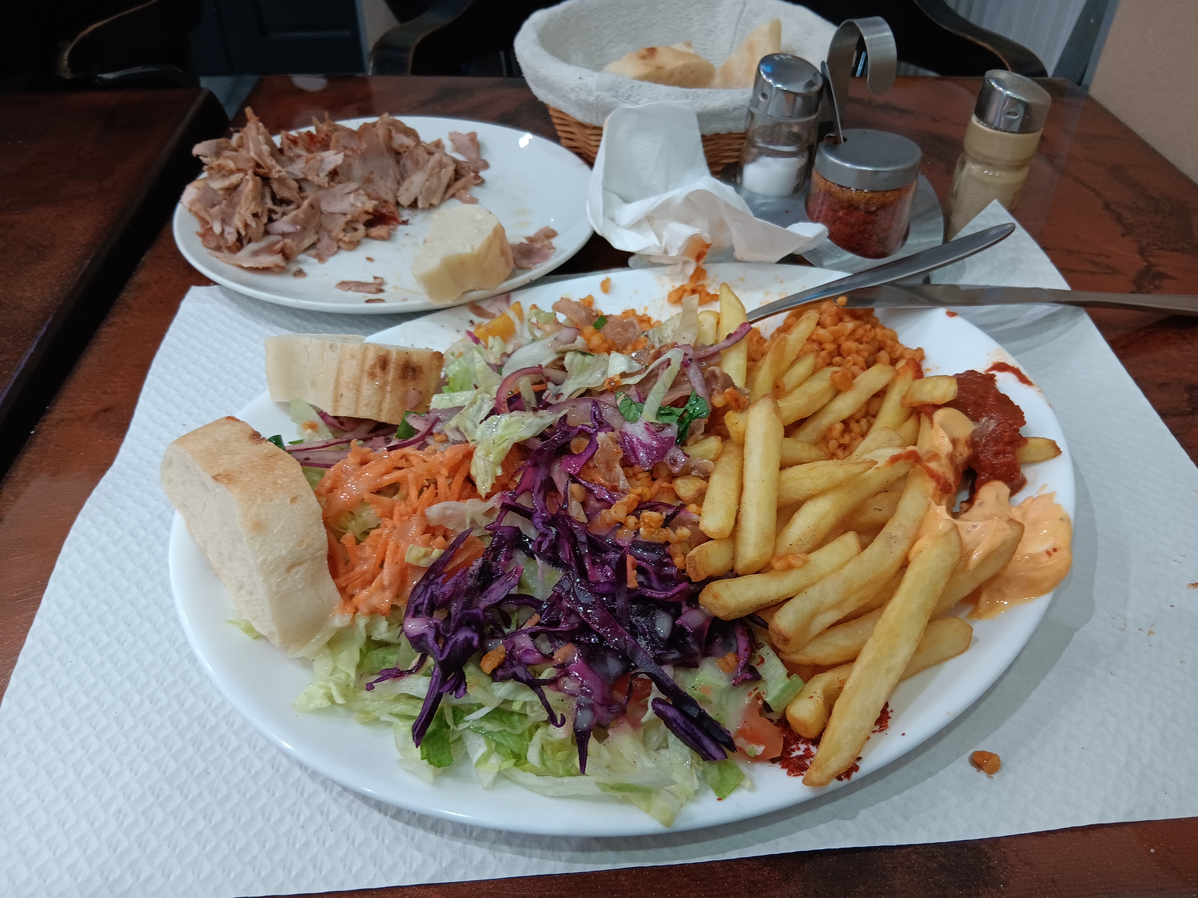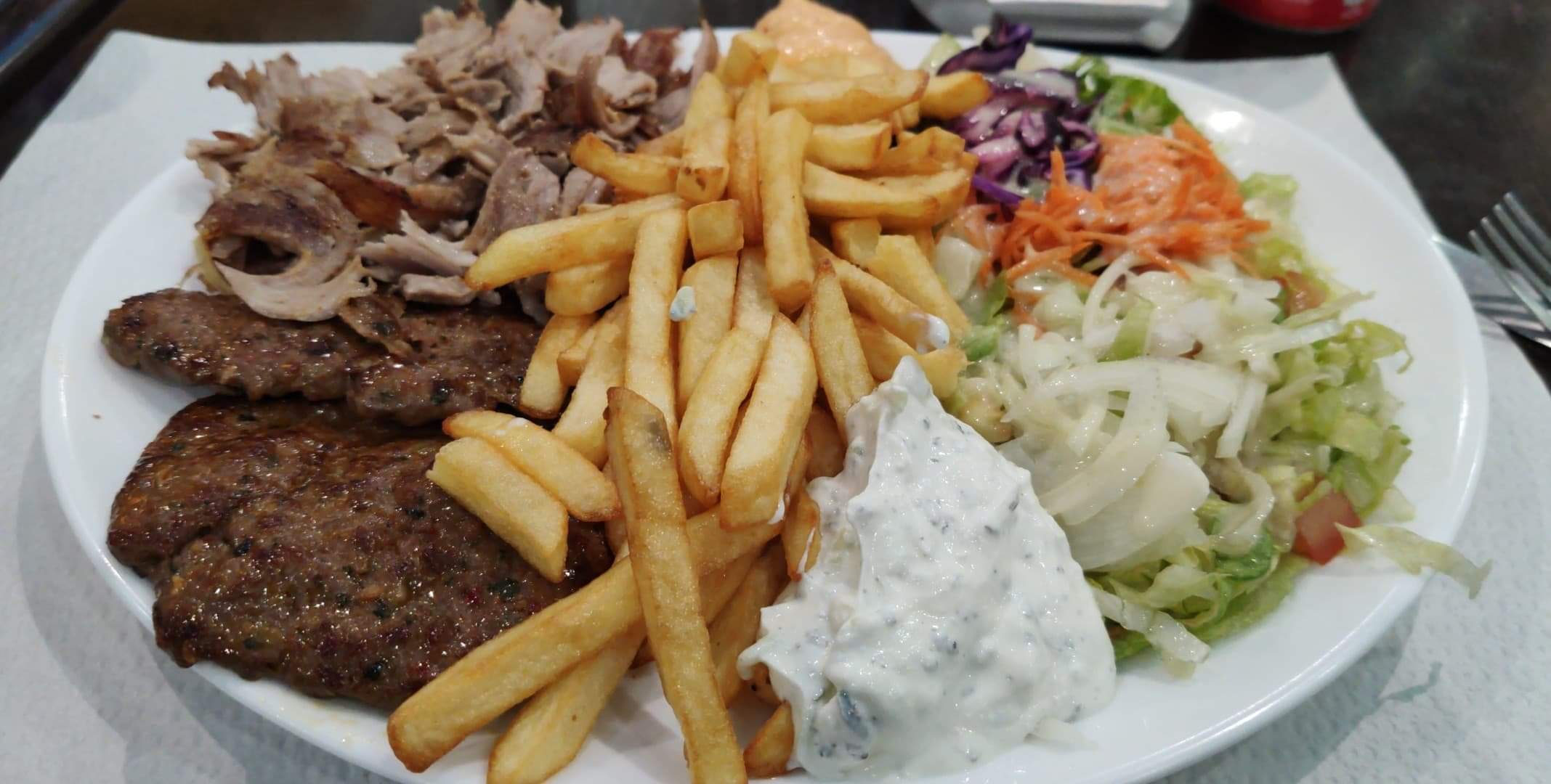 1°) Accueil décevant , a peine rentré limite même pas de bonjour, pas le temps de regarder la liste qu'il faut déjà choisir son menu. 2°) viande trop cuit et sec avec peu de frites par rapport a d'autre kebab que j'ai connu . 3°) service impeccable a la tête du client pas pour nous en tout cas. Un couple a côté de Ont eu set de table fourchette couteaux et deux serveurs dessus pour leur commande Nous sur table rien du tout Donc très décevant on n'y retournera plus