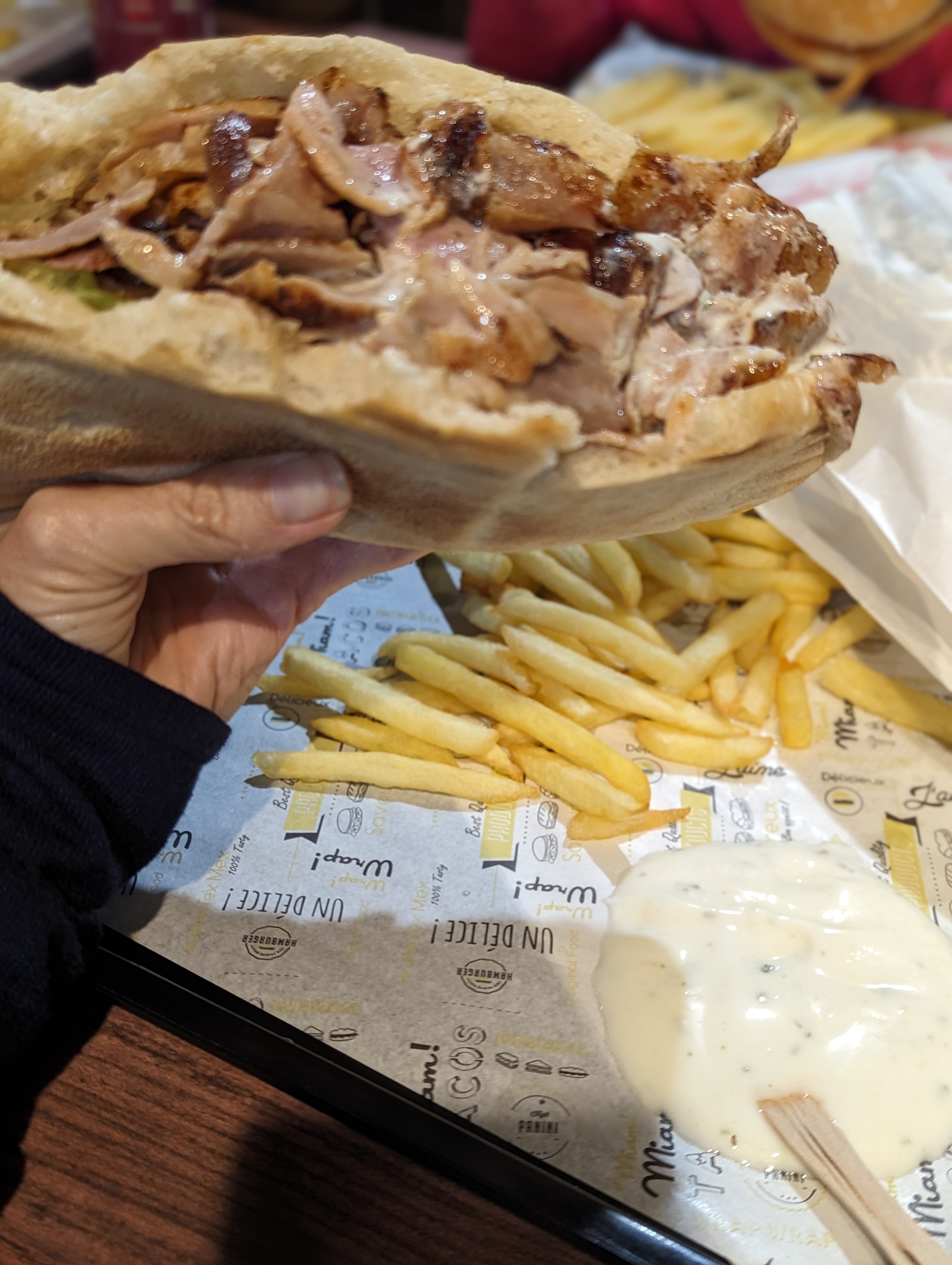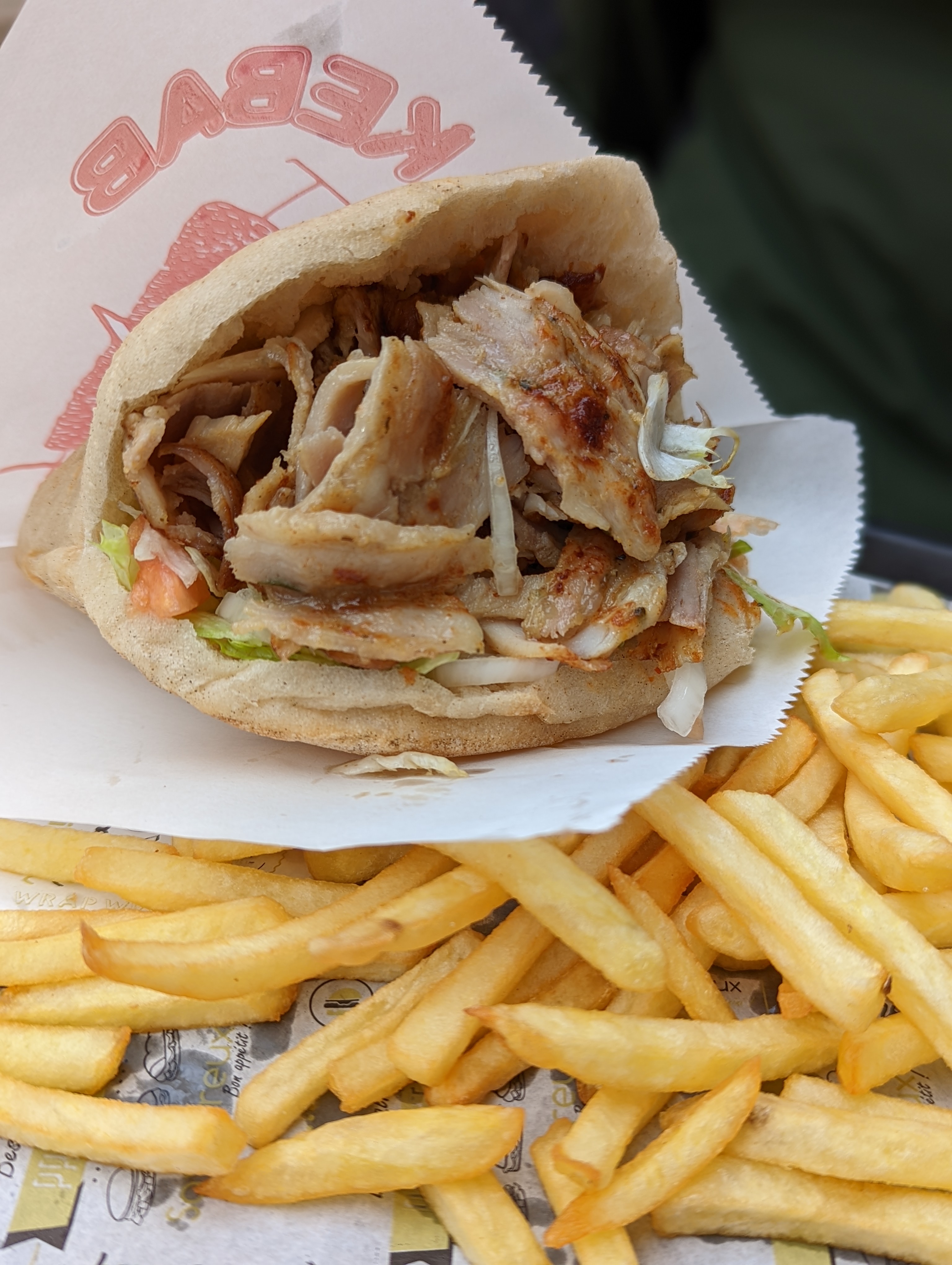 Tres bon kebab Pas sec De vrai morceaux de viande Frite bien cuite