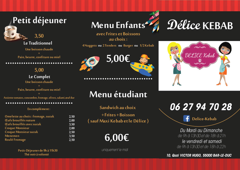 Plus qu’un fast food, Délice Kebab a un menu varié et propose même des formules petit déjeuner. Très délicieux et le restaurant inspire la propreté, je recommande!