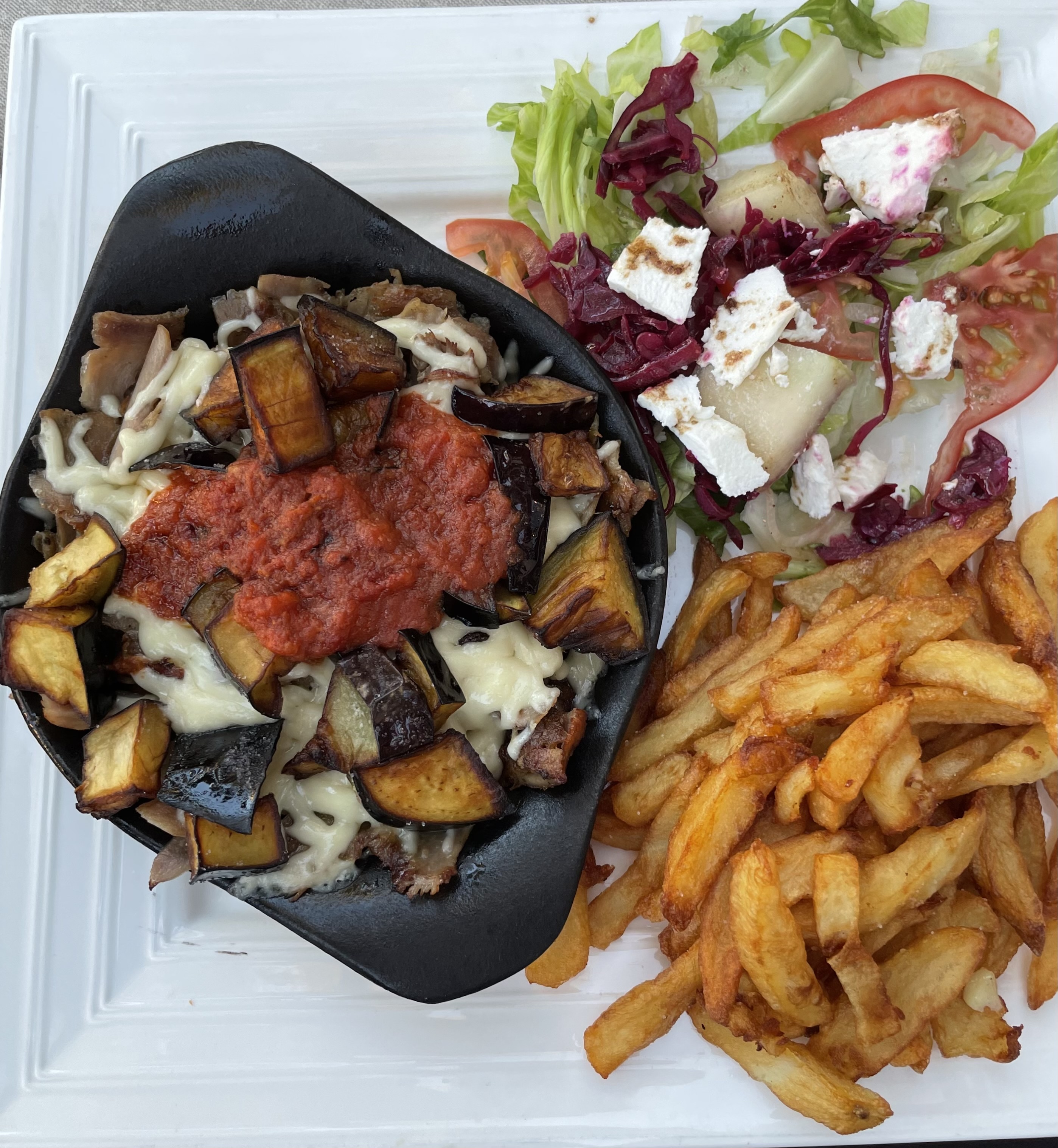 Incroyable sandwich végétarien à l'aubergine ! Et des frites délicieuses