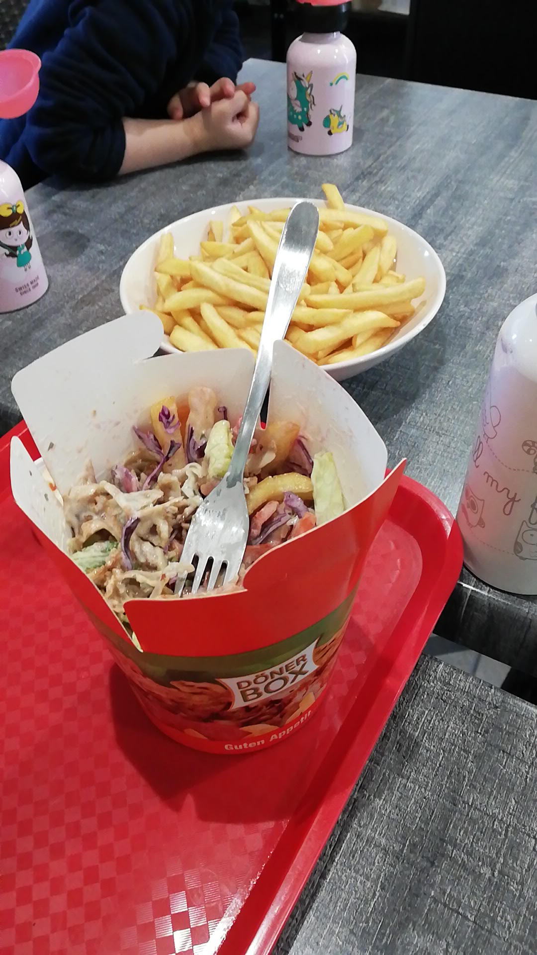 Tacos escalope bien Döner Box bien Döner bien Portion de frites nickel Super sympa, souriant, aimable et gentil avec les enfants Ça pourrait être mieux mais dans un petit espace c'est pas facile.