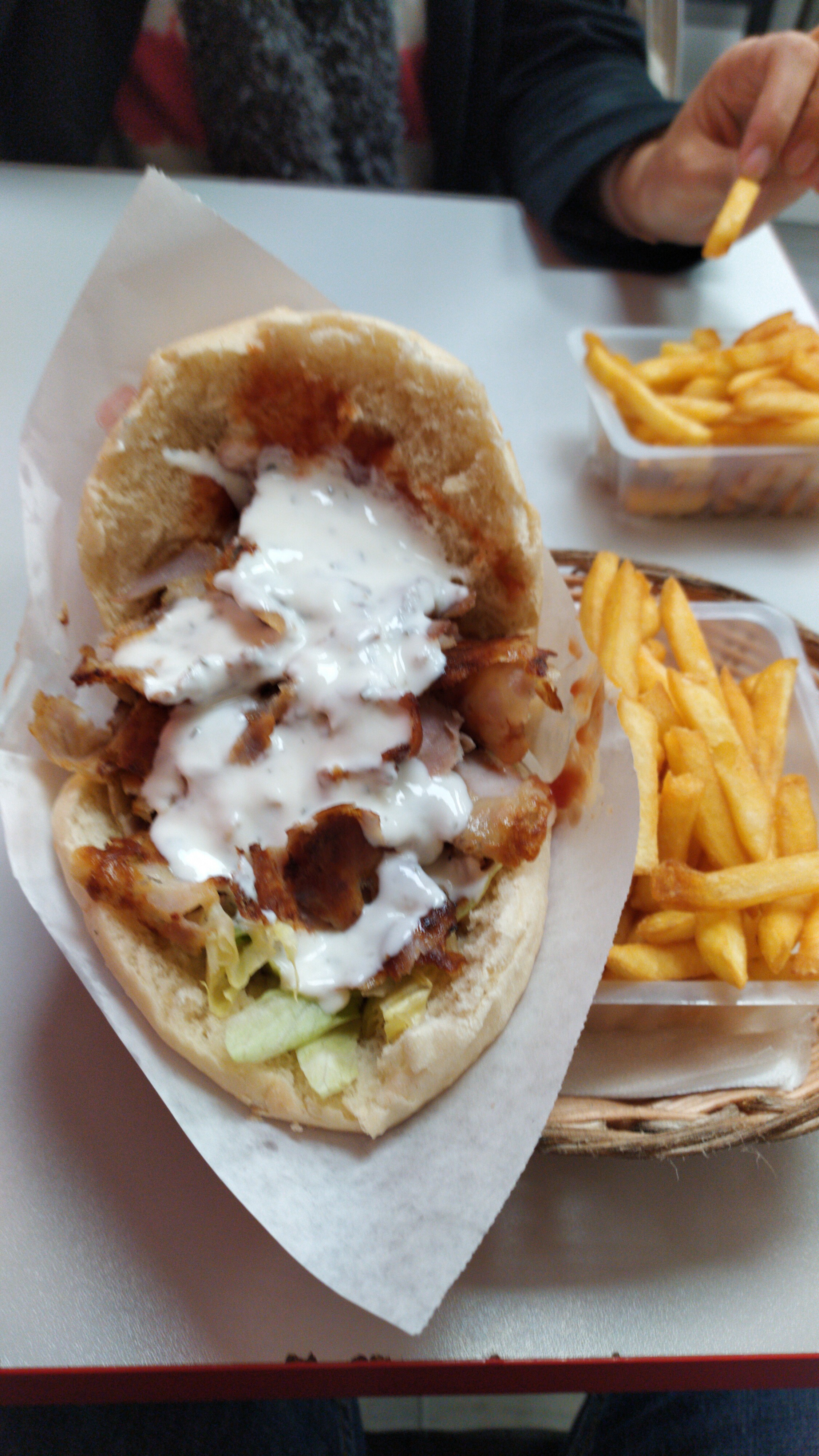 La plus belle cuisson de viande kebab qui soit. Les lamelles sont croustillantes et juteuse le pain parfait et les frites copieusement servis. On mange à l'intérieur comme à l'extérieur en terrasse ou sur un des nombreux bancs du parcs. Je recommande