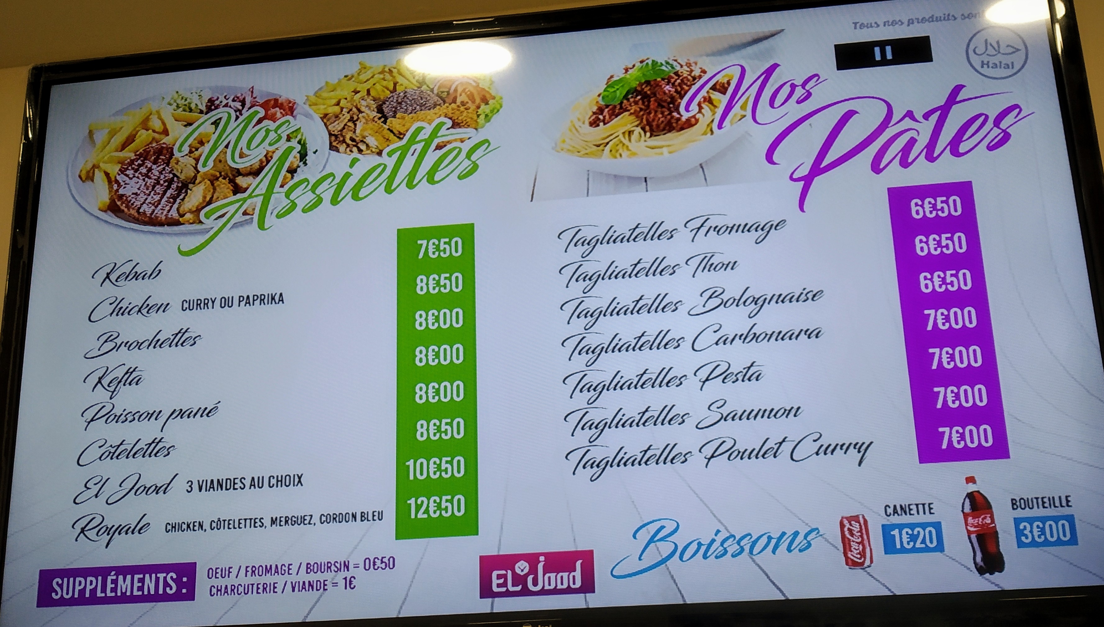 - ✔️ Plats halal
