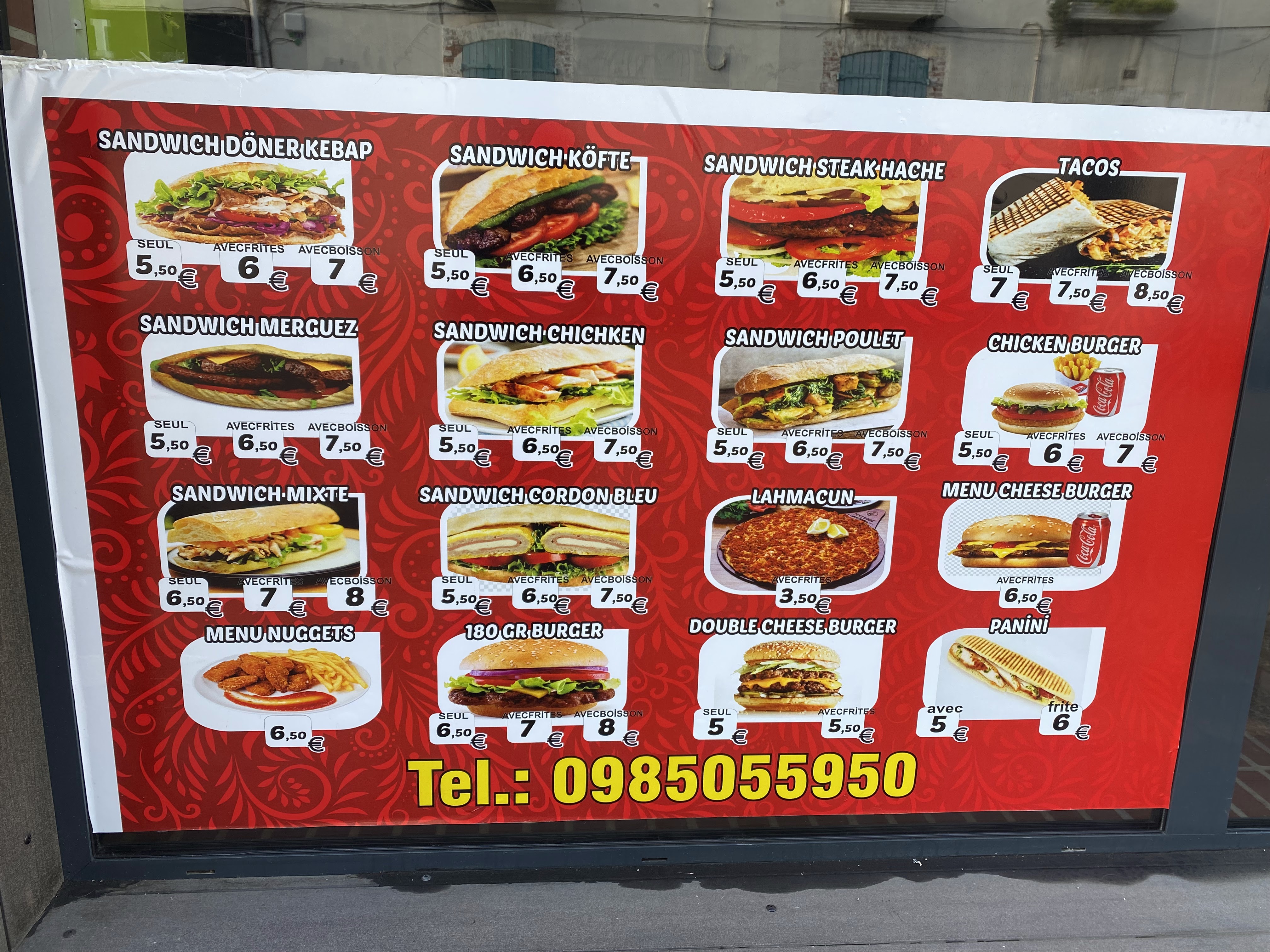 Je met une étoile parce que j’ai pas le choix Sinon zéro ! Blé avec un goût rance ! Viande périmé ! Merguez pas cuite ! Sauce blanche degueu ! En faite rien ne va ! Donc voilà plusieurs client de perdu C’est honteux