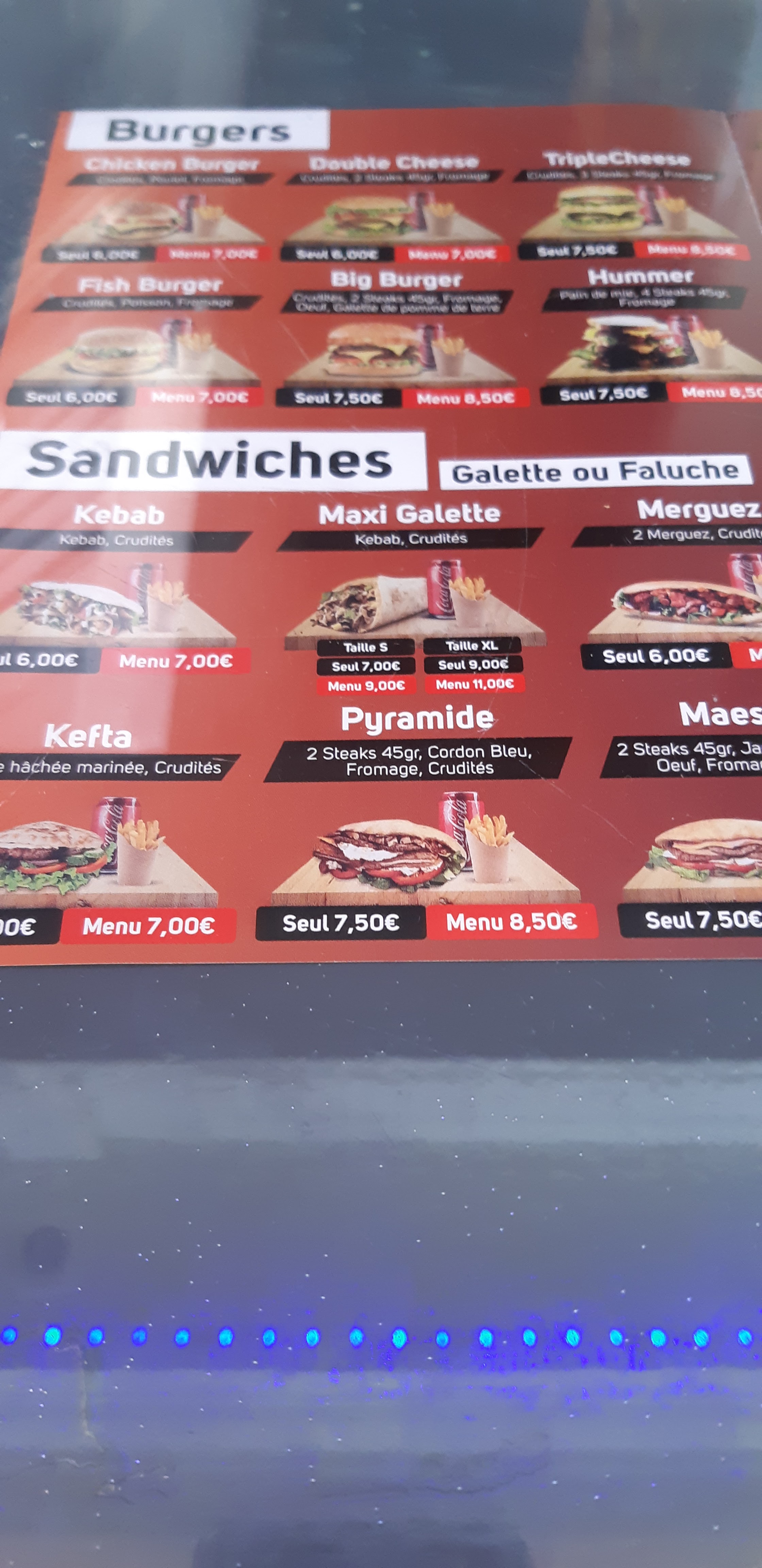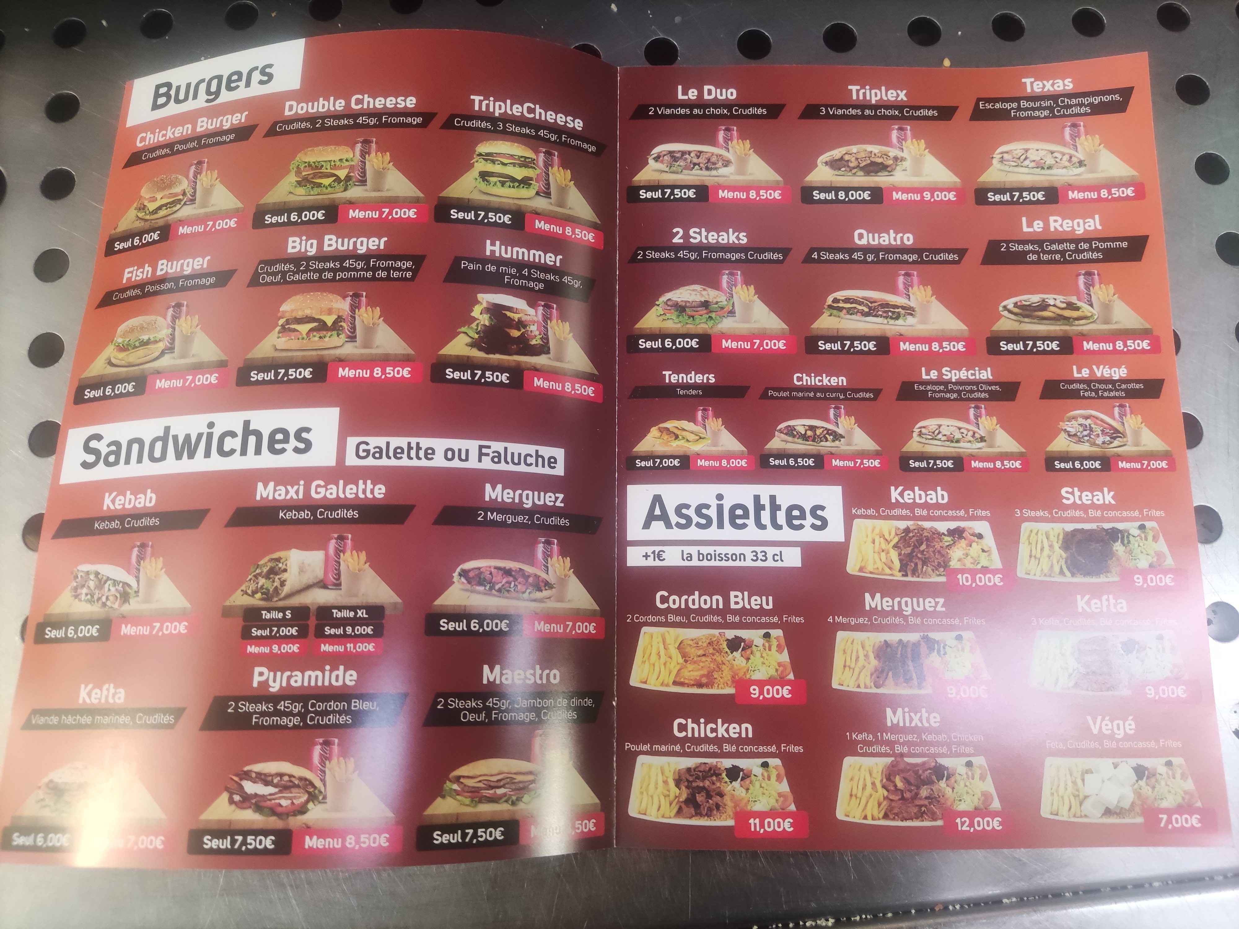 J'ai pris un hamburger celui-ci etait mangeable mais pas assez bon en plus de la viande qui n'étais pas très bien cuite par contre il y a eu un très bon accueil et le personnel est sympa reste à tester les kebabs pour voir si la note changera ou pas