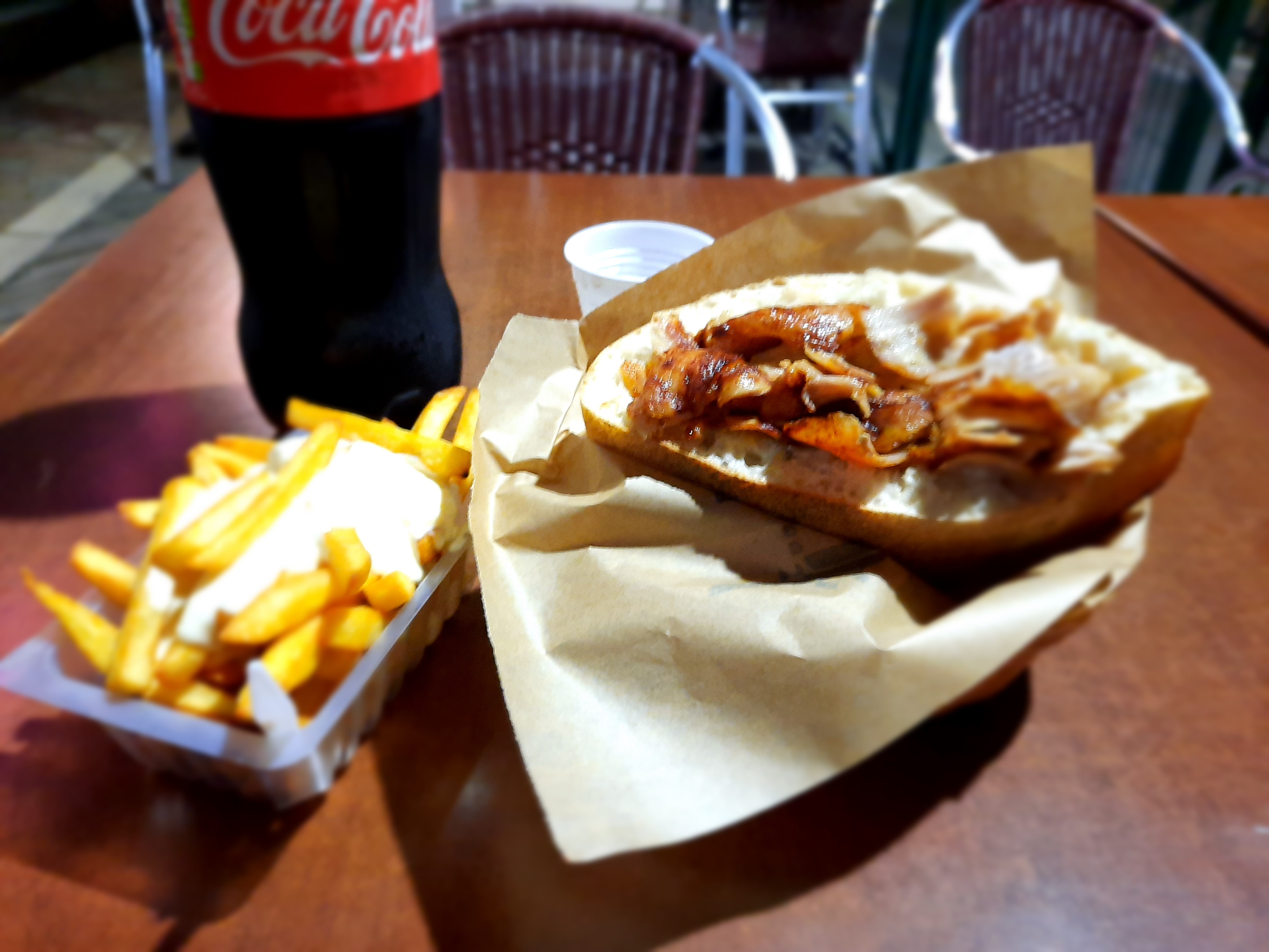 Très bon kebab service rapide terrasse un peut petite met bon petite rue le principal c'est d'avoir une belle asiette