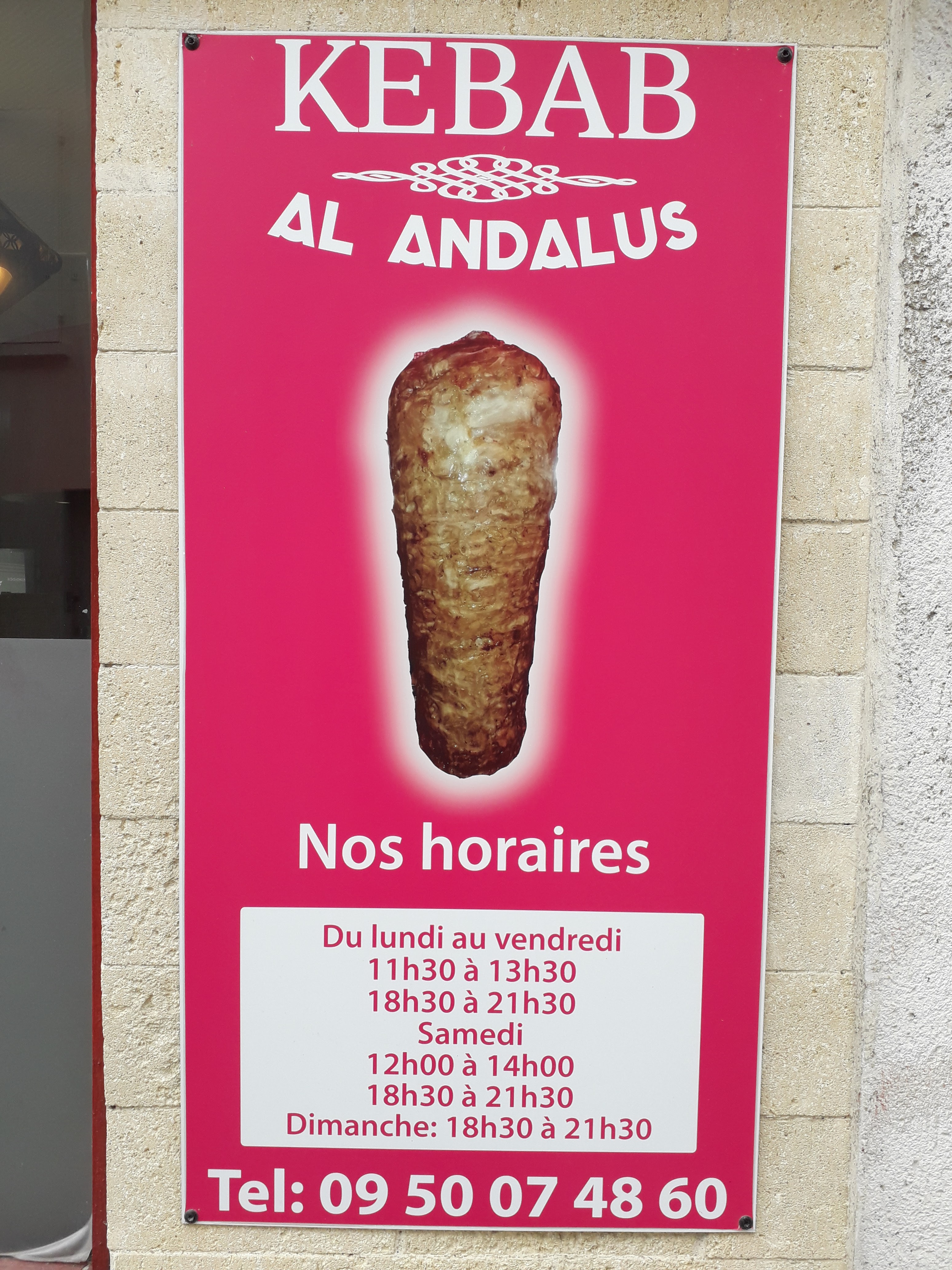 Voici toutes les informations sur le Kebab Kebab "Al Andalouse" 17400 saint jean d'angely qui ce trouve au 17 Rue des Jacobins, 17400 Saint-Jean-d'Angély (17). Sur cette fiche vous trouverez les photos, l'adresse, les horaires d'ouverture, le numero de téléphone et les avis clients.Vous pouvez églement rédiger un avis si vous le souhaitez en bas de page.