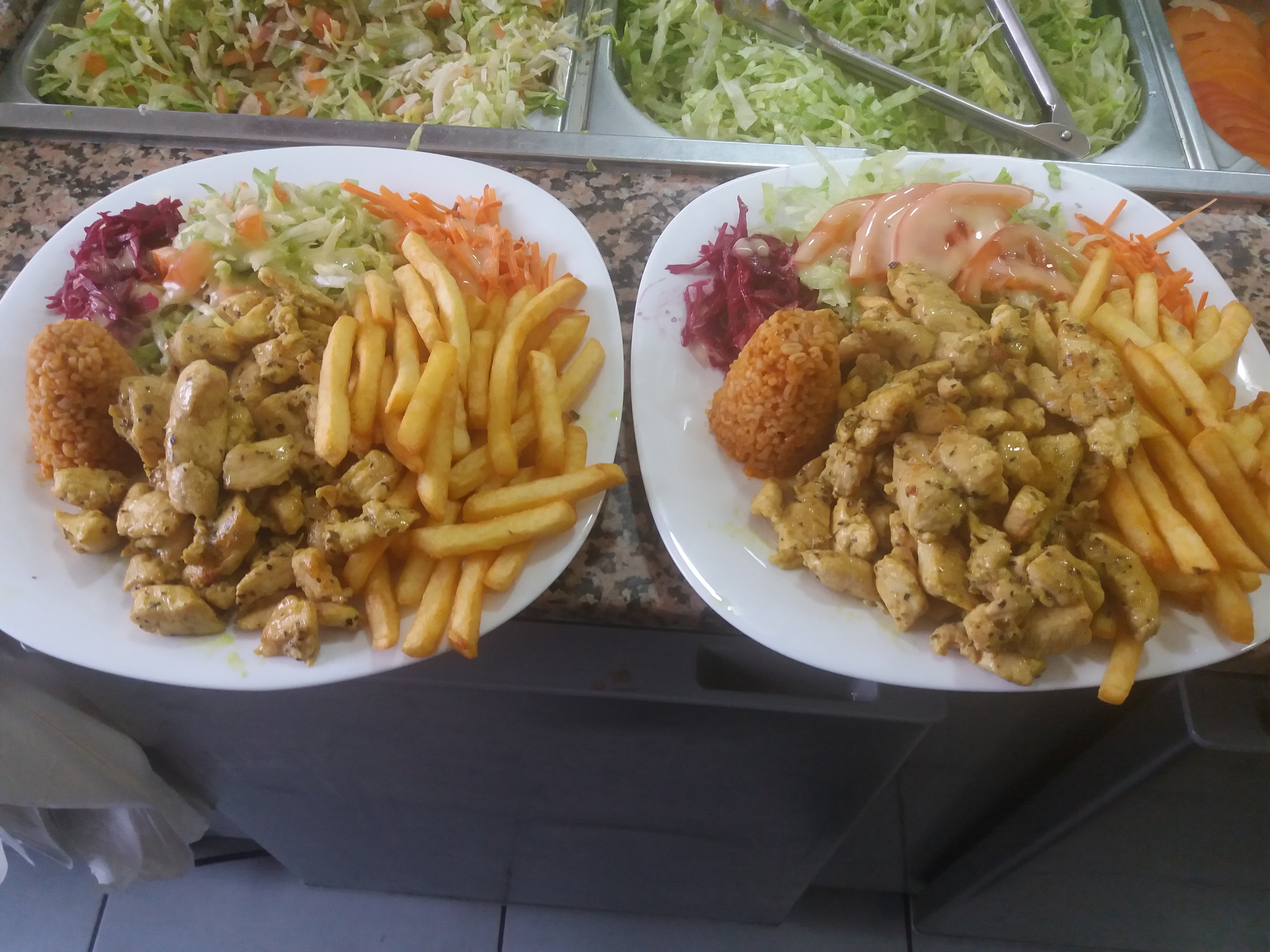 Frite trop salé qui datez de la veille je pense vue comment elles était dure et le kebab la viande ces pas la meilleure que j'ai mangé ni le kebab en lui même