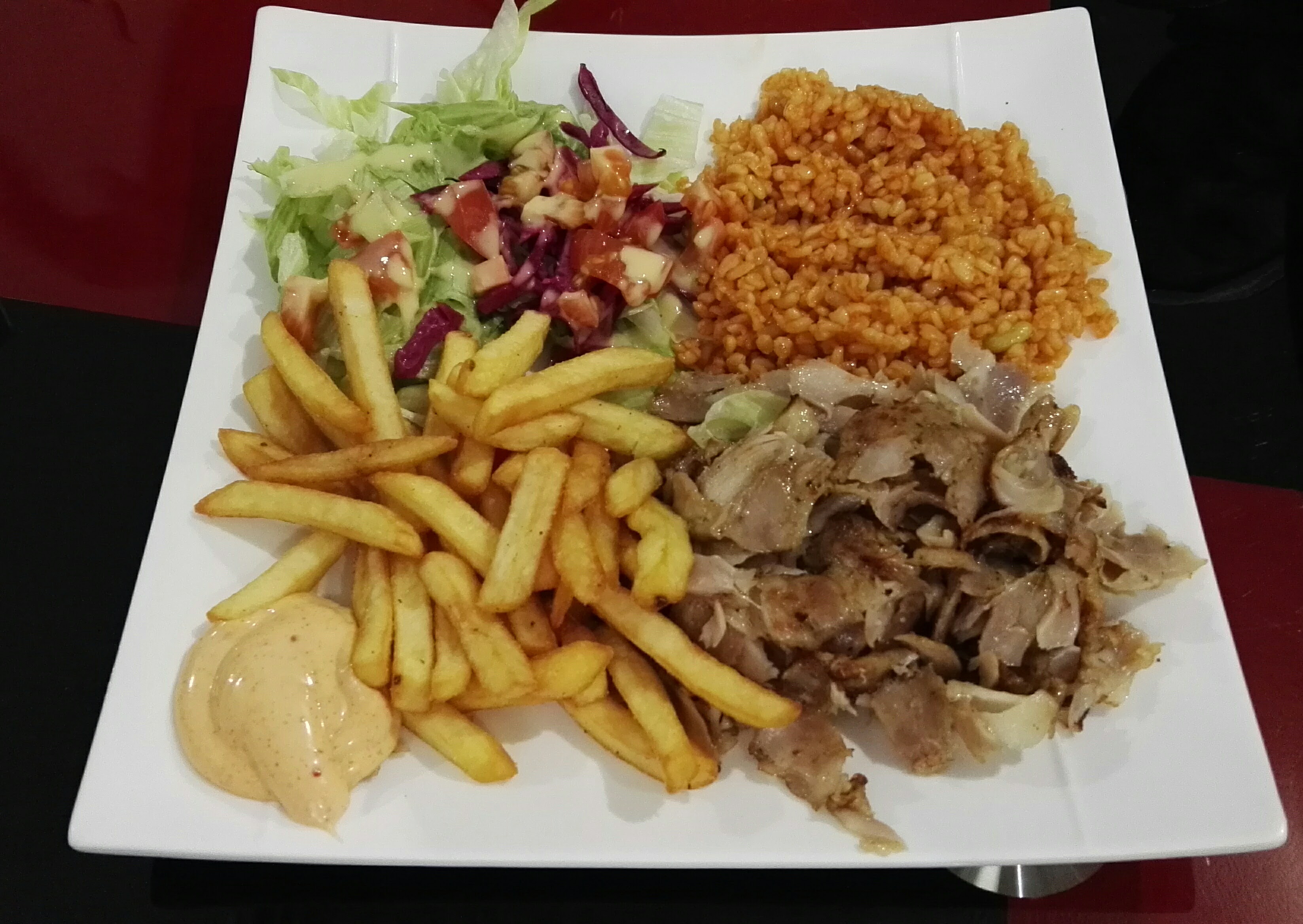 A fuire ! Viande de mauvaise qualité ! Frite dur comme du béton ! Pour 31 euros mieux vaut un bon mac do ! A fuire a fuire !! Mangé des pâtes chez vous , ou un sandwich a Carrefour mais évité ce kebab !!