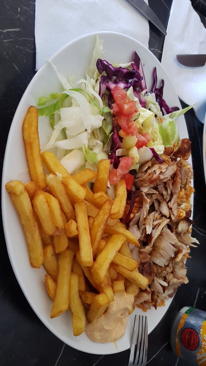 Délicieuse et copieuse assiette kebab. Crudités fraîches. Tout est frais. Vraiment je ne comprends pas les commentaires négatifs mais je n ai pas essayé le pain. Certains avis sont faux car la carte bancaire est acceptée. Un peu lent mais le patron est seul. Il est sympathique mais petite barrière linguistique. Bref je recommande l assiette kebab!!