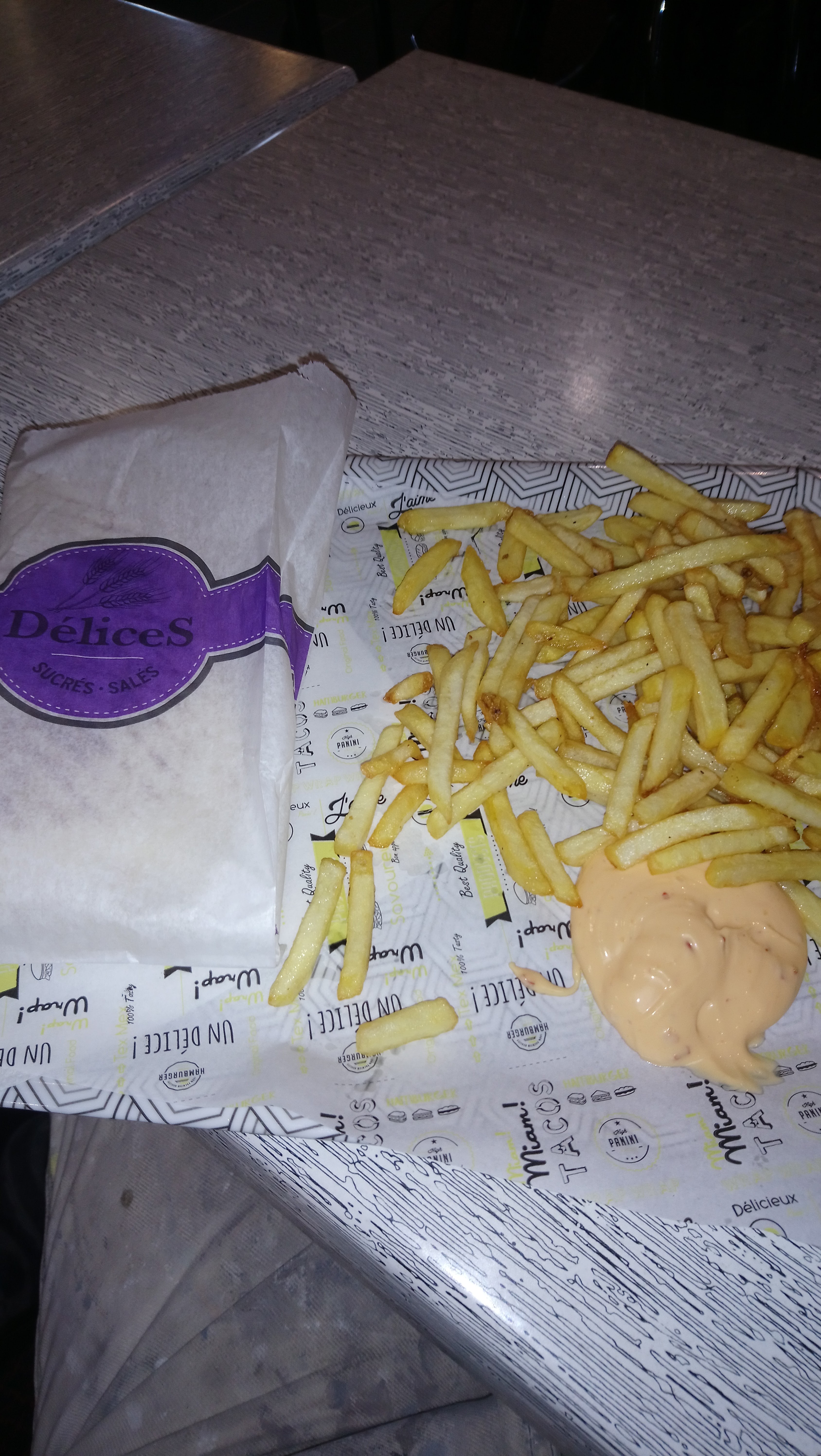 Commande par uber eat le tacos était plus que fin limite c’était un demie tacos voir un tiers de tacos, je demande une sauce biggy il mette de l’algérienne et j’aime pas ça en plus il était sec pour 9€ ces honteux sur le paquet de frite y’a des écritures et ces pas ma commande niveau hygiène limite limite j’ai commander un burger et un panini et les deux était aussi petit pour le prix ,avant c’était bon et ça valait le prix vendu maintenant ça vaut pas le coup ces pas bon ça cale pas et ça vaut pas le prix vendu