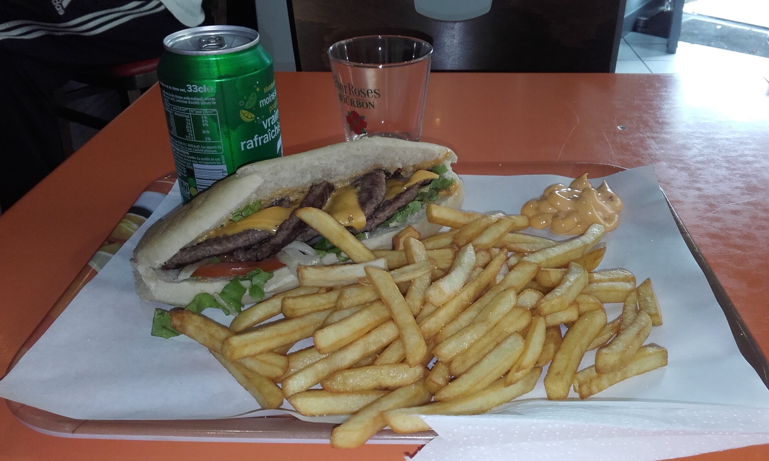 Pour 5,50€ j’ai eu le droit en plus de mon sandwich à une séance d’archéologie avec les os dans le steak et des cheveux dans les frites. Les propriétaires ont pris soin de nous offrir une intoxication alimentaire d’une semaine a mon ami et moi.