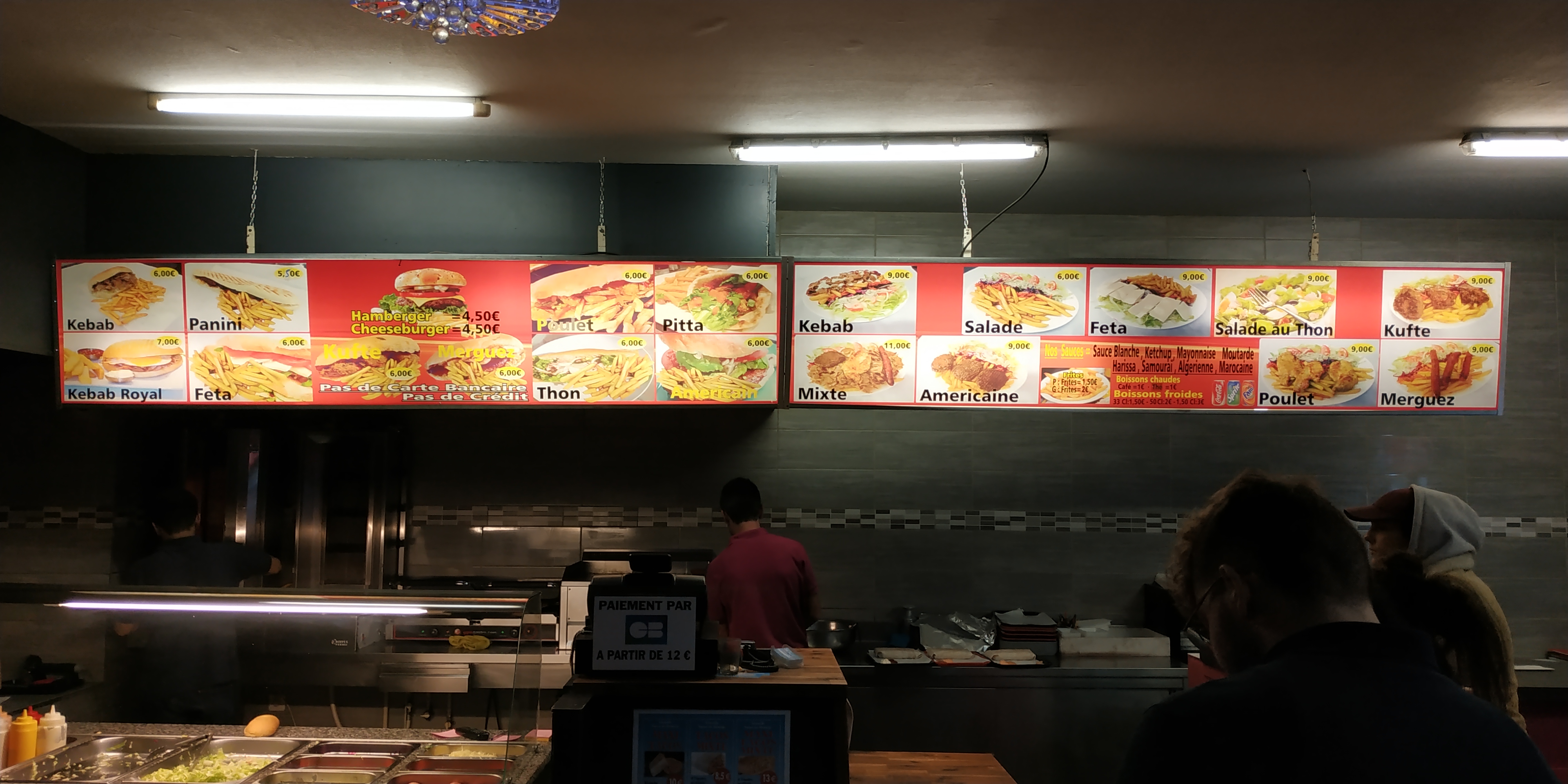Le personnel sont très gentils et le service est très bien fait à des prix abordable on a le choix entre kebab burger salade ou autre on peut prendre à emporter ou manger sur place