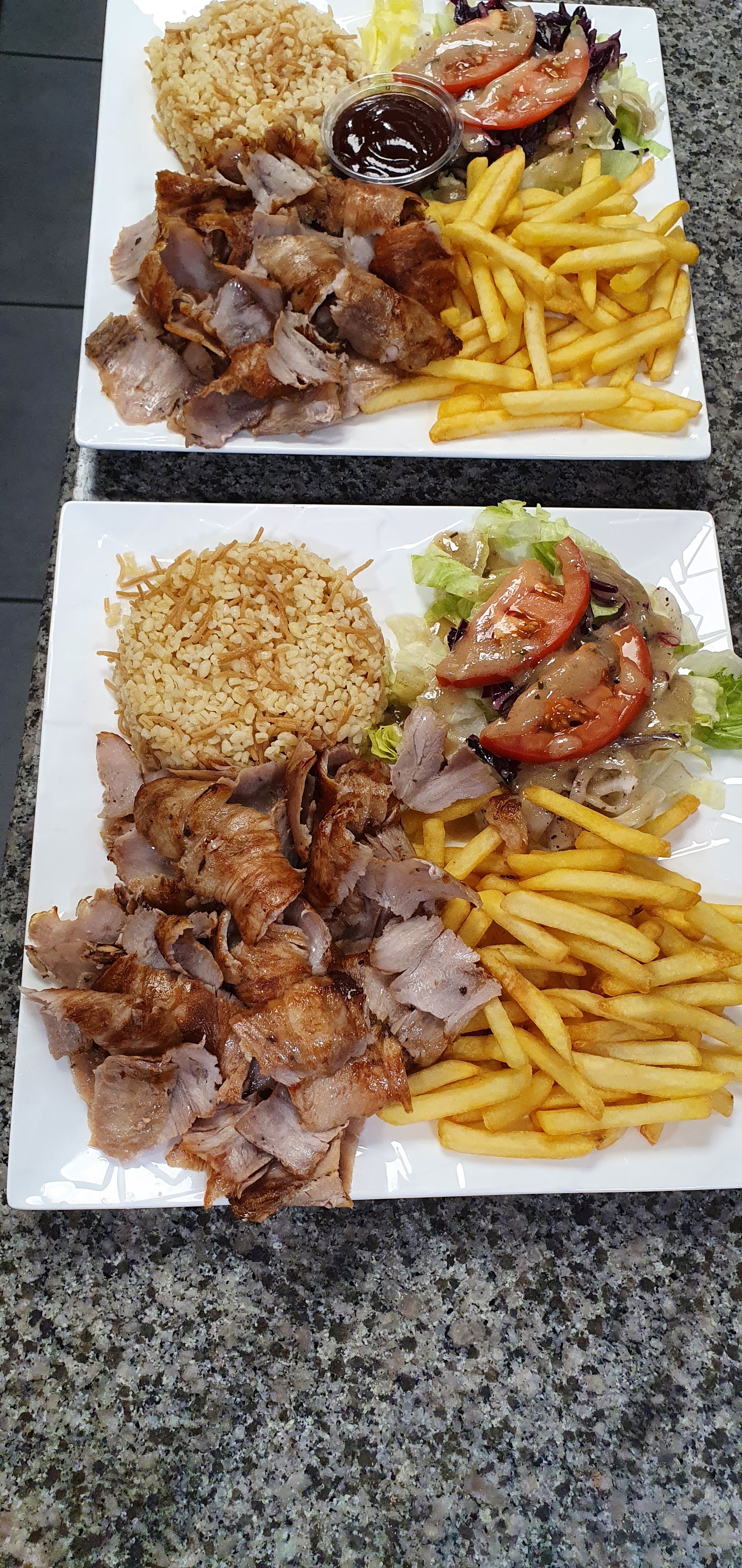 Les frites très bonnes. Le kebab aussi. Endroit propre. Pour moi j ai trouvé après que c était trop salé j ai fait que boire de l eau après. La prochaine fois ce sera avec moins de sel pour moi.