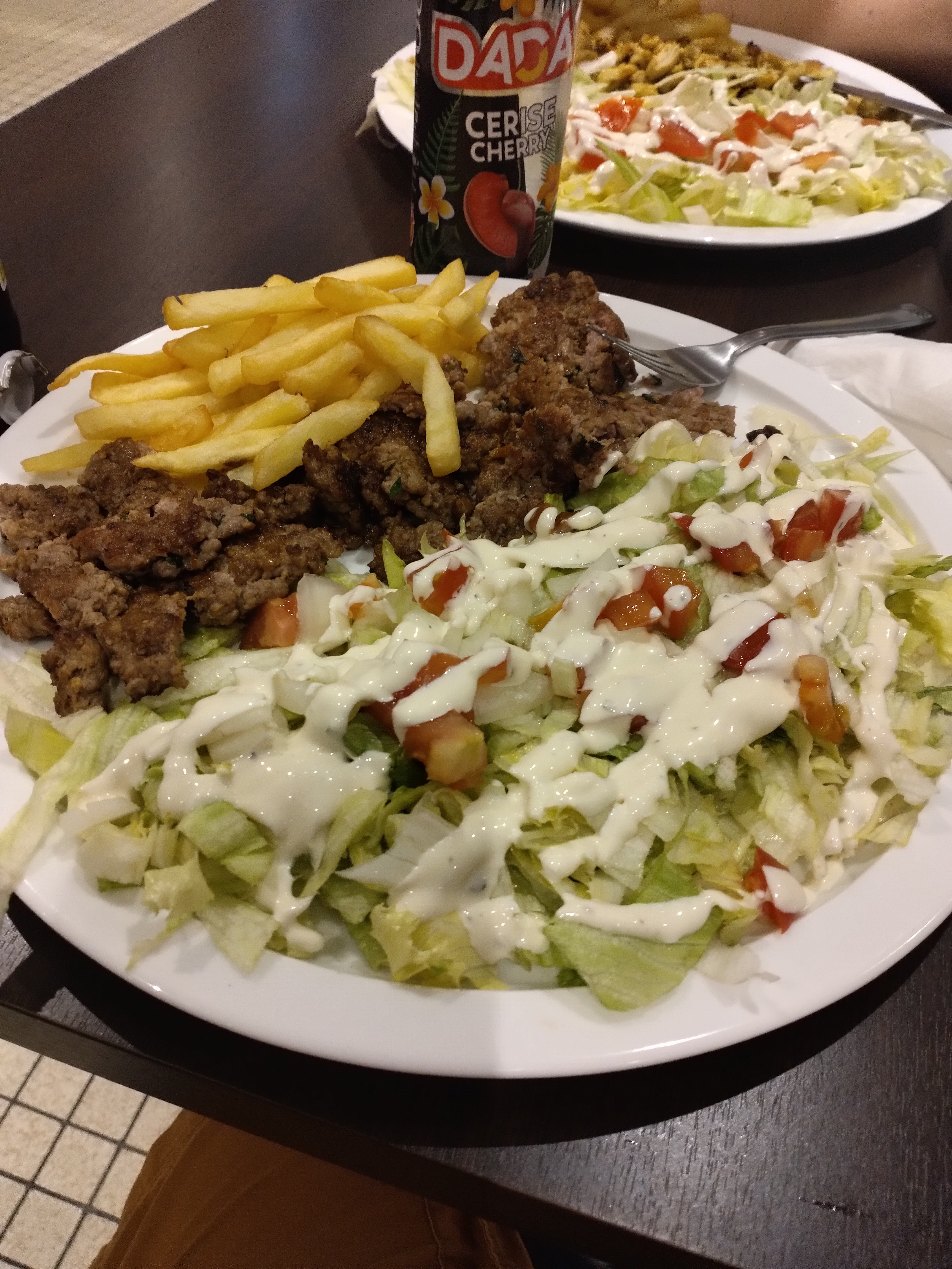 Le chef il nous a servi un classique, il nous a fidélisé depuis 2 mois je conseille fortement, surtout si vous êtes en prise masse, il charge bien de sauce et de viande seul défaut il met du soolking pour l'ambiance 🤓👍🏻