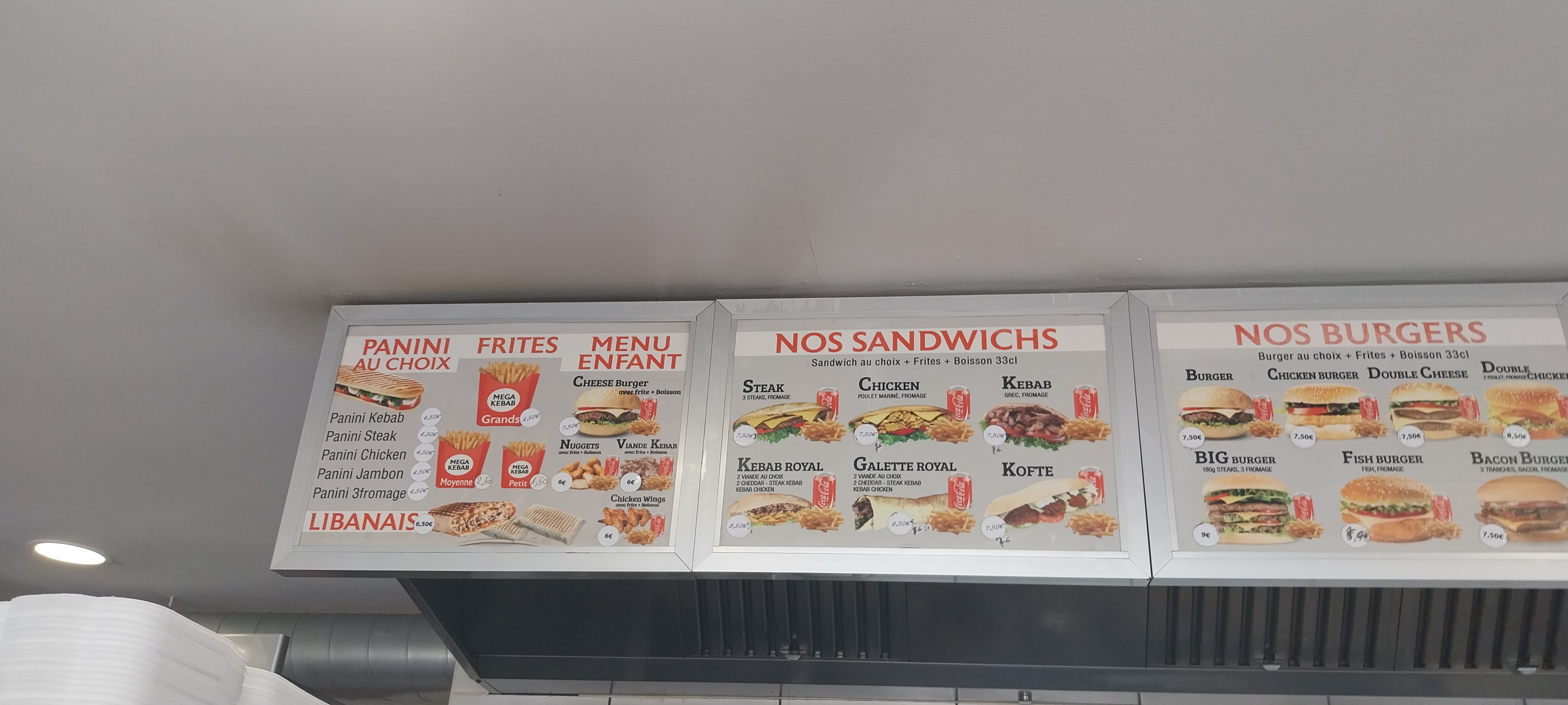 Lorsqu'on entre dans un établissement nommé Mega Kebab, on s'attend à en sortir sans avoir faim. Galette passable, beaucoup trop petite, accompagnée d'une quantité absolument ridicule de frites. Boisson facturée sans en avoir demandé, pour un total de 8€50.