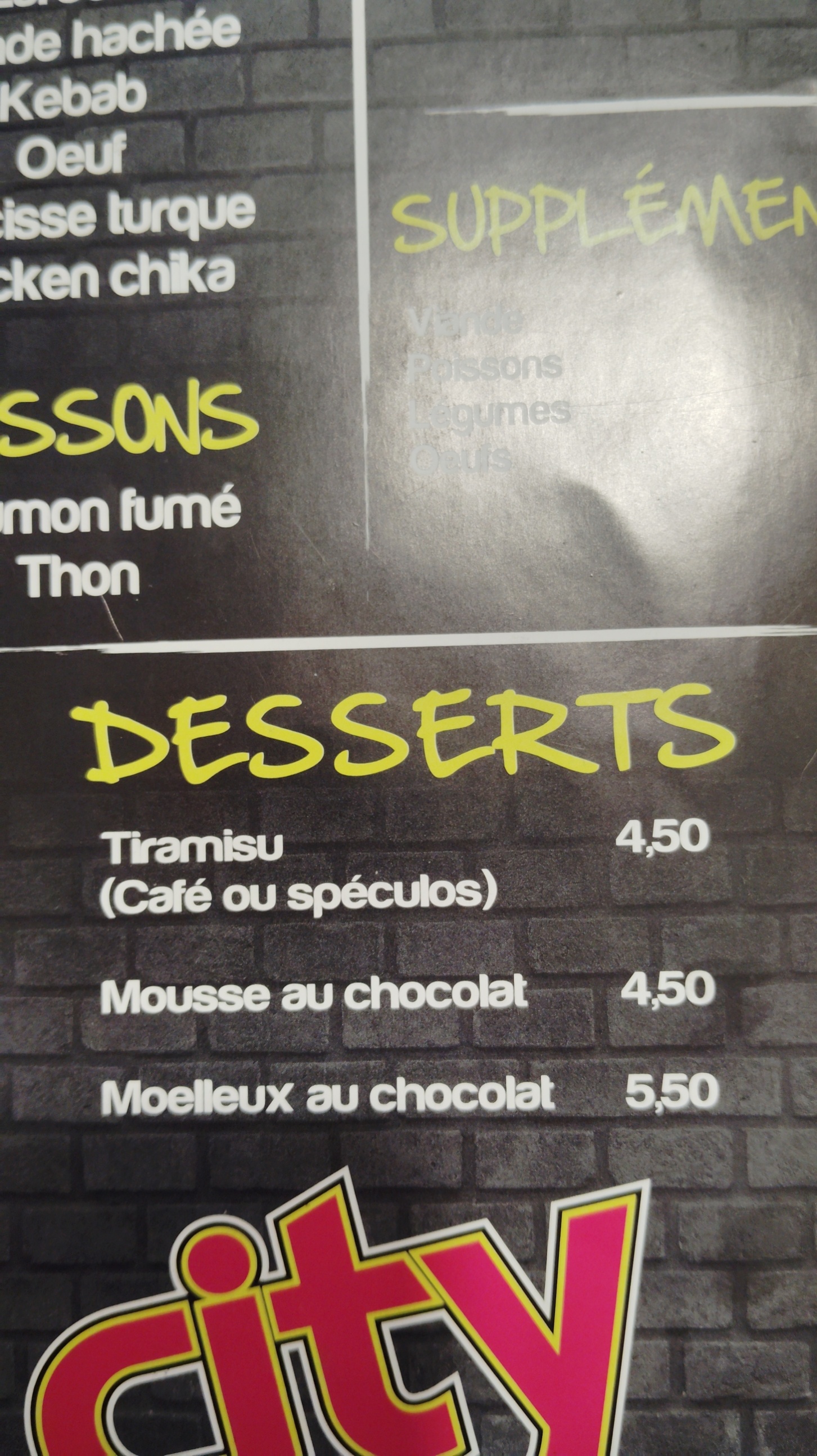 Depuis quelques temps j ai découvert city kebab. Vraiment sympa la bouffe et à la limite de la fermeture, possible encire de pouvoir manger. Par contre la commande par téléphone faut vraiment t arrêter lez prises de commandes et d annoncer des heures et quand après avoir attendu 2h on arrive et rien n est fait .il est maintenant 21h j ai pas mes gosses n ont pas mangé. Dommage next pour ma part