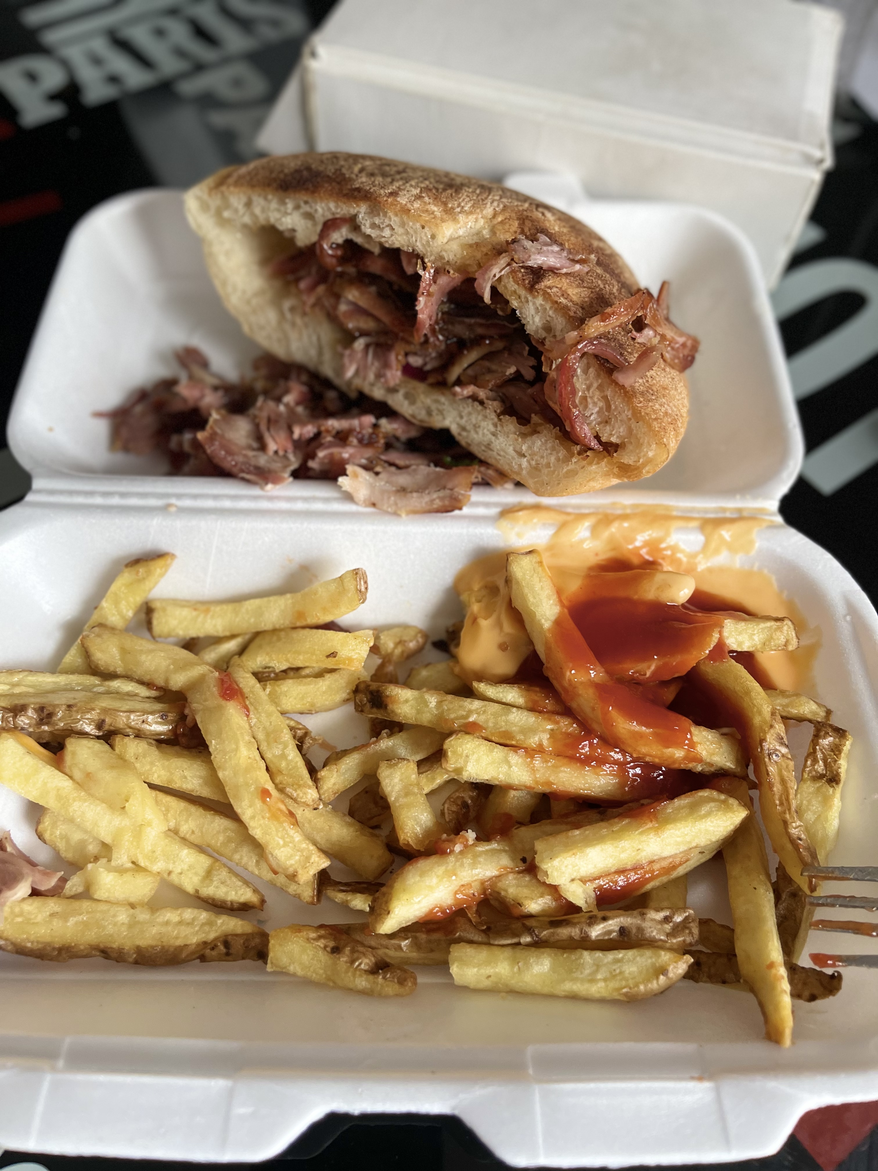 La viande est bonne mais depuis des années que je suis habitué à aller là-bas il n'y a plus que de la salade dans leurs sandwichs quand on leur demande gentiment de nous ajouter un peu de viande il faut direct passer la main à la poche car c'est un supplément L'équipe de moins en moins agréable le restaurant à décoter ce qui ne donne plus envie de venir