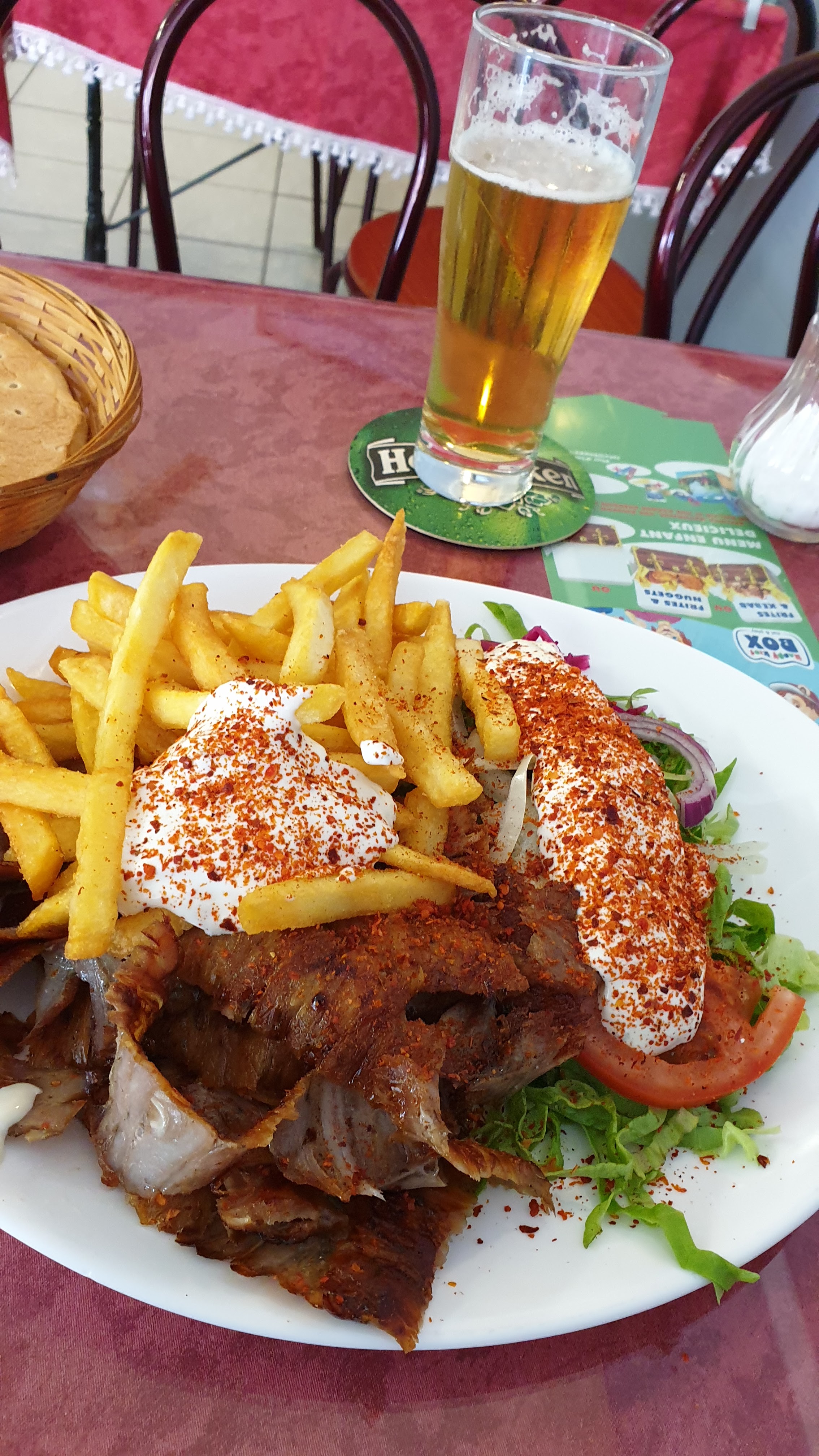 Pas le meilleur kebab que j'ai mangé jusqu'à présent. L'ensemble de mon sandwich était froid, mes frites trop cuites et trop salées. Reste tout de même convenable. Cadre spacieux et ambiance simple. Commande au comptoir et service à table. Présence d'un accès aux personnes à mobilité réduite pour entrer dans l'établissement. Pas de paiement par carte bancaire (banque non loin de l'établissement).