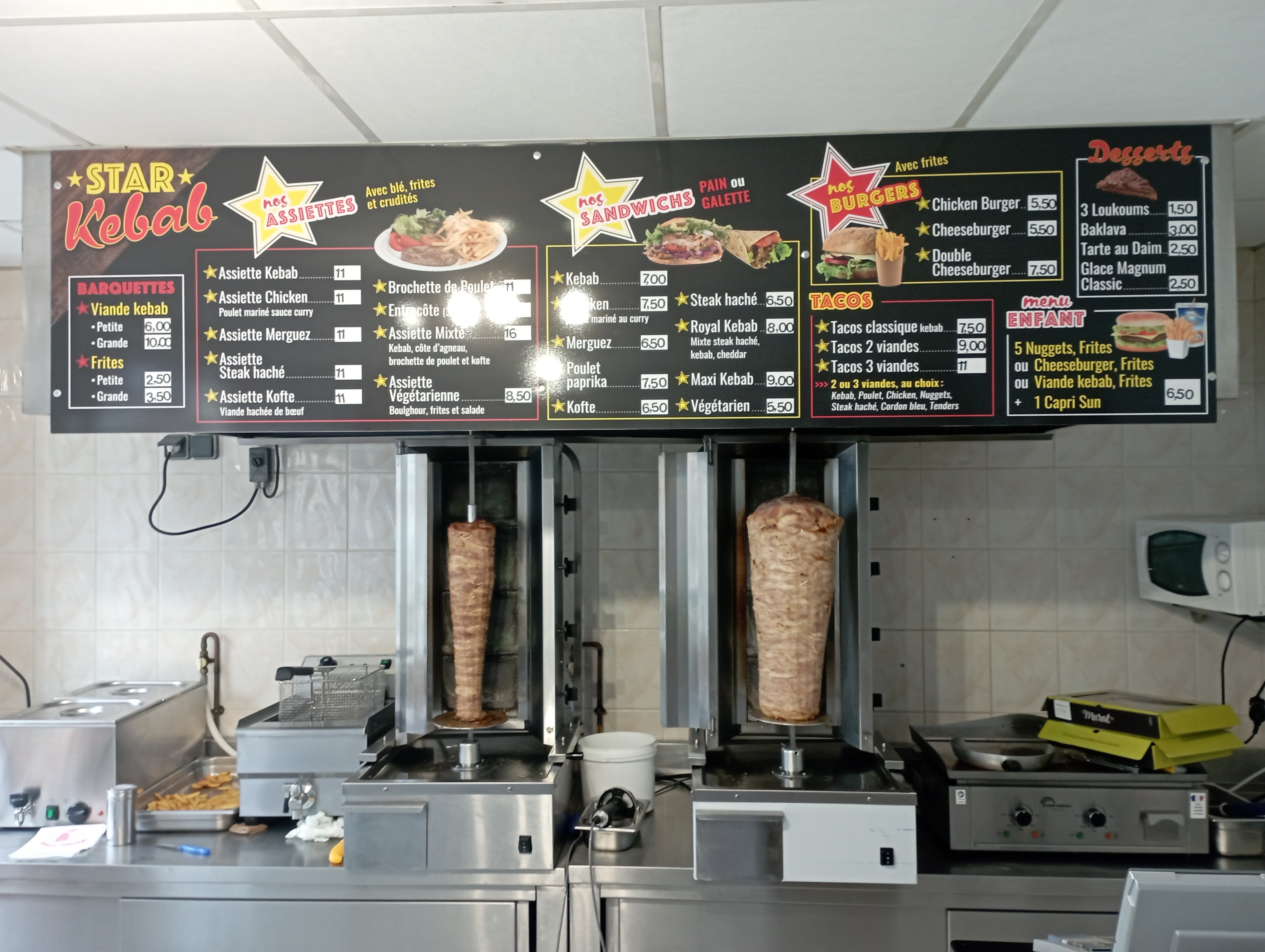 Stars Kebab On mange très bien On a une Bonne ambiance Ils sont très Gentil Il aime bien rigoler Avec les clients